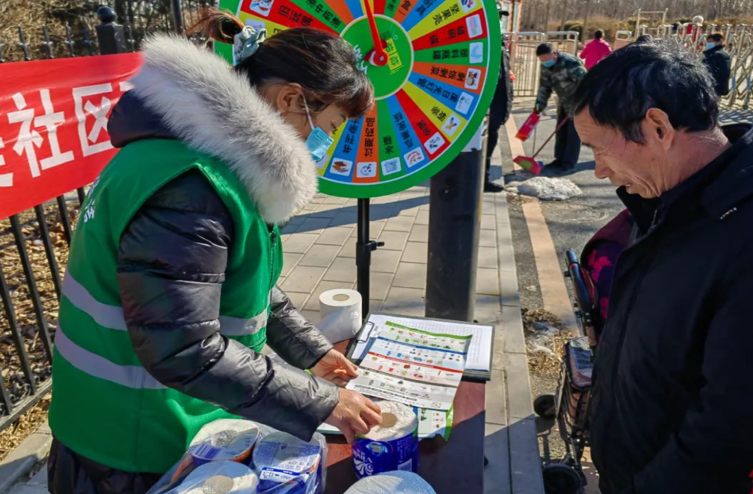 活动中,工作人员在所辖小区挨家挨户走访,向居民发放《生活垃圾分类投放指引》,宣传讲解生活垃圾分类类别、投放方式以及有害垃圾的处理方法。随后,在马南里小公园开展垃圾分类宣传,向居民发放垃圾分类宣传单,并围绕如何正确地进行垃圾分类、推进垃圾分类的益处等,为广大居民进行现场讲解。活动现场设置垃圾分类知识趣味转盘问答环节,以随机问答形式,检验居民们对垃圾分类知识掌握程度,充分调动居民的参与积极性,引导大家从日常小事做起,为建设和谐宜居的生态环境建设贡献力量。